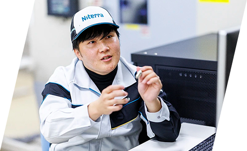 2022年に日本特殊陶業に新卒入社したT。既存スパークプラグの改良に3年ほど携わった後、現在は新規スパークプラグの開発担当として幅広い業務を担っています。「知識の幅を広げたい」という思いから、新たな挑戦に果敢に取り組むTが、これまでの歩みと仕事の魅力を語ります。